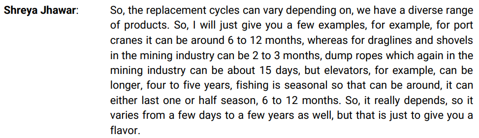 - Company is able to withstand all the fluctuation post covid and able to manage the margin by doing pass through in the commodity wire ropes and LRPC