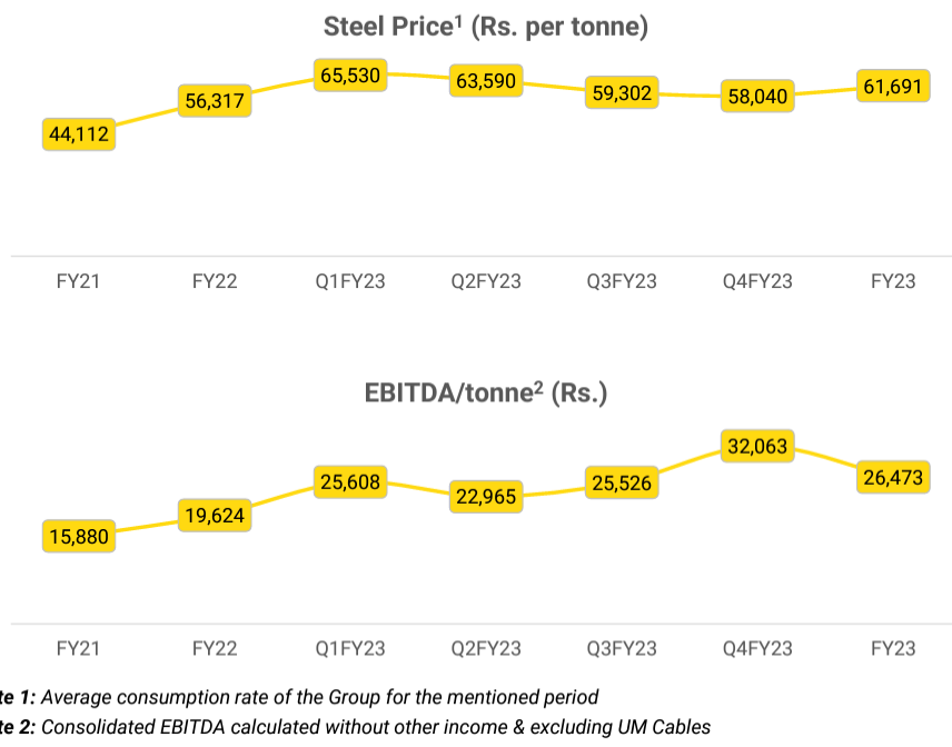 - Company has robust pass on mechanism in place to manage raw material price volatility and deliver sustained EBITDA/mt
